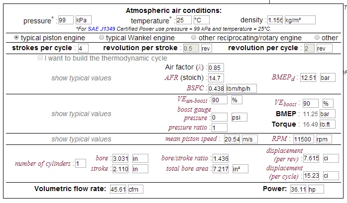 Mantab bukan, akan tetapi bagi konsumen yang kurang puas dengan performa ini, nah disinilah letak “menariknya”, konsumen bisa meningkatkan variabel VE “sedikit saja” dari 85 (std) menjadi 90% dan rpm dinaikkan menjadi 11500 rpm, sehingga powernya menjadi 36.11 hp. Power yang luar biasa, setara dengan yzf r25 oprekan. Dan pastilah akselerasinya lebih nendang dari std.