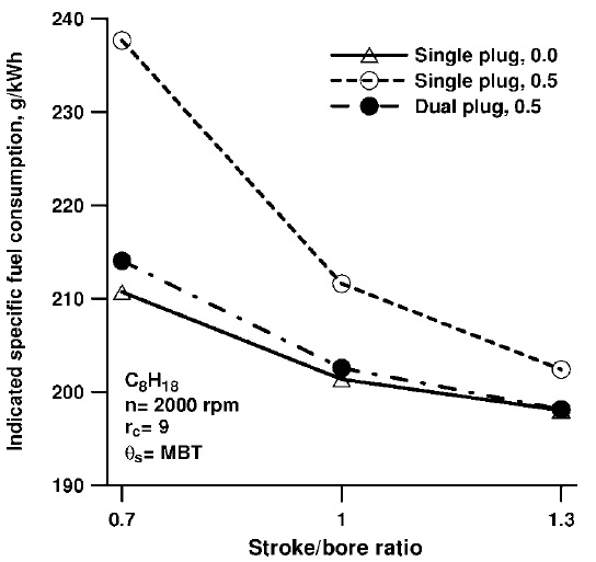 Dari hasil penelitian Ismail, Ismet dan Atilla [Effects of the Stroke/Bore Ratio on the Performance Parameters of a Dual-Spark-Ignition (DSI) Engine] menunjukkan bahwa :