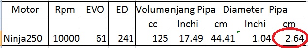 rumus diameter pipa knalpot