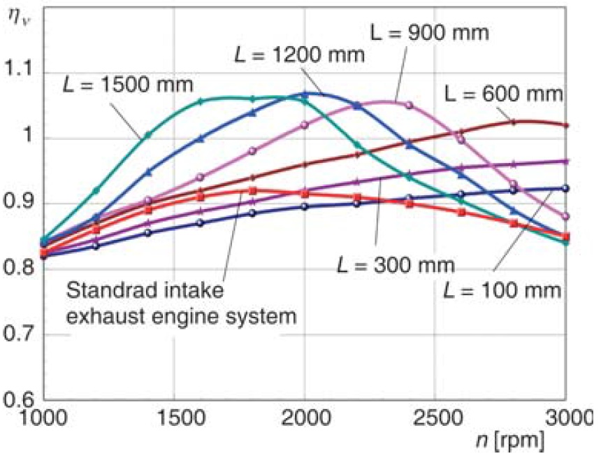 Hasil penelitian Radivoje dkk dalam tulisan ilmiah yg berjudul “ASPECTS OF VOLUMETRIC EFFICIENCY MEASUREMENT FOR RECIPROCATING ENGINES”, menunjukkan bahwa tuning VE pada rpm yang berbeda dengan menggunakan panjang runner yang berbeda pula.