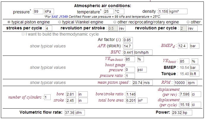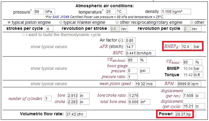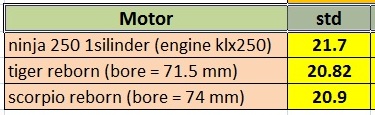 Begitu pula dengan scorpio rebon 250 cc, jika CR = 11 dan peak powernya di 10000 rpm, maka powernya menjadi 29.37 hp