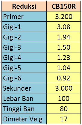 Dan rasio transmisi serta keliling ban cb150r adalahrasio cb150r