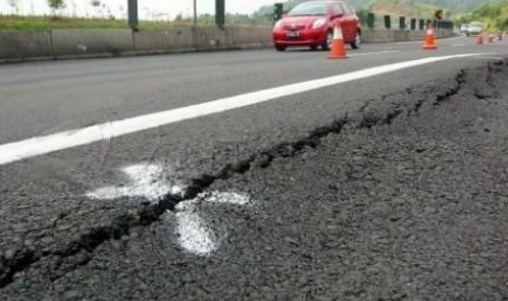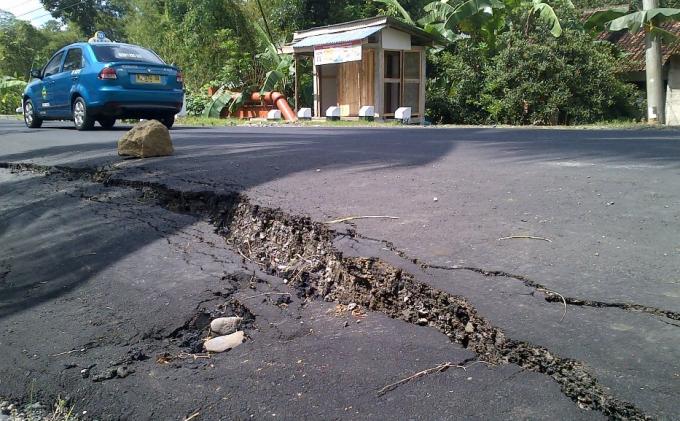 Oleh karena itu, mungkin ada beberapa bagian jalan yang “belum ambles”, tapi memberikan tanda2 akan ambles, dan sebaiknya kita menghindarinya. Penampakan jalan yang mengindikasikan akan ambles seperti tampak pada gambar ini.