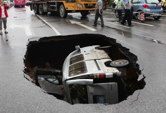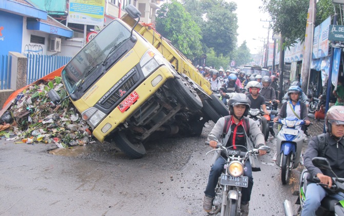 Jika kita mengabaikannya, mungkin kalau lagi apes, kita bisa terperosok ke jalan yang tiba2 ambles karena terkena bobot kendaraan kita. Seperti ini