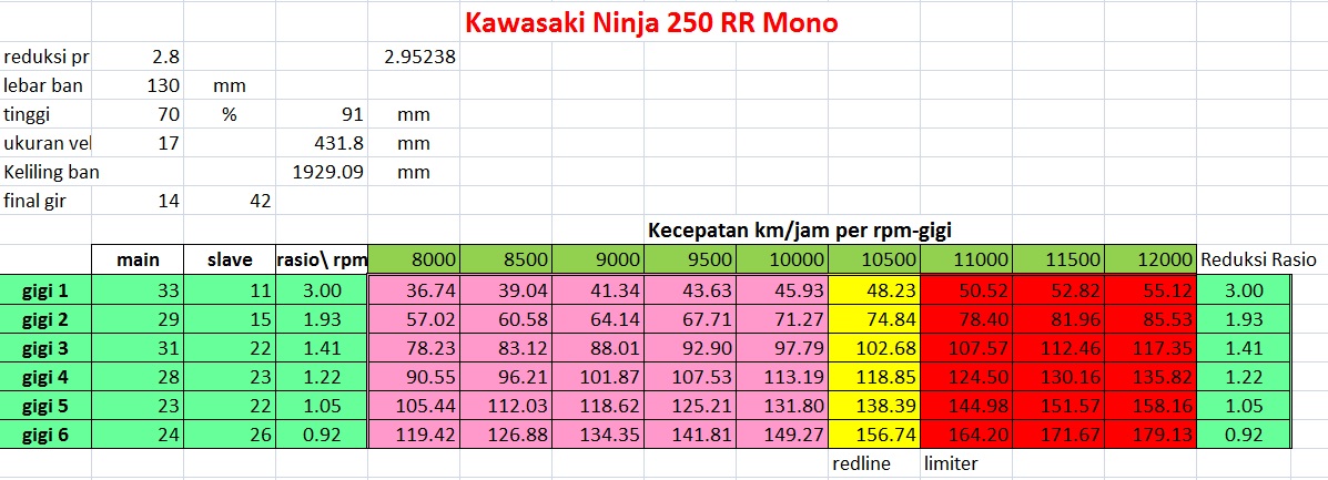 Baru saja kawasaki ninja 250 rr mono dirilis, baik penampakannya maupun spek nya. Dan ternyata spek bore x stroke persis dengan mesin klx 250 (72 mm x 61.2 mm), hanya saja kawasaki meng-upgrade posisi rpm power maksimumnya dan CR-nya. Sebelumnya pada mesin klx 250 pada 7500 rpm dengan CR=11:1, powernya adalah 21.7 hp.