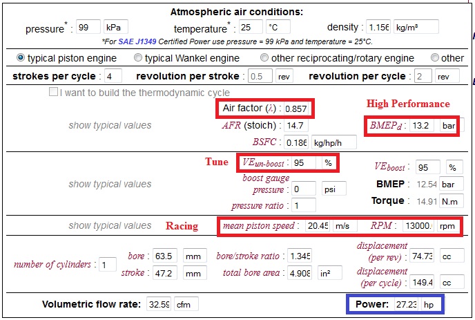 Diperoleh power = 27.23 hp, dan oprekan ini termasuk katagori tuned-racing-high performance, berbahan bakar pertamax+.
