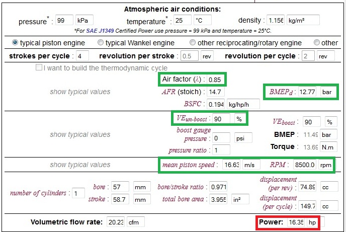 - Penyetelan AFR = 11.76 adalah sedikit boros, hal ini dilakukan selain meningkatkan power, juga untuk membantu pendinginan ruang bakar. Pada pemilihan settingan ini harus diperhatikan apakah bensin yang dibawa cukup untuk digunakan sampai finish atau tidak, BSFC = 0.184 kg/hp/jam.