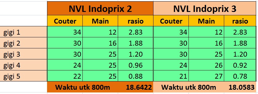 Topspeed NVL Indoprix 2 = 170 kpj, dan topspeed NVL Indoprix 3 = 191.46 kpj.
