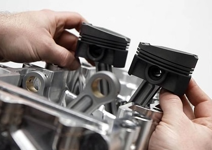 4. Bentuk permukaan piston dimodifikasi “miring” agar cukup menggunakan 1 head cylinder, sehingga mengurangi bobotnya