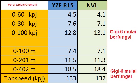 2. Catatan waktu dan akselerasi R15 kalah dari NVL