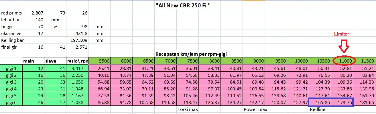 Itulah kondisi standart dari penyaluran daya melaui transmisi. Sedangkan mengenai akselerasi akan bisa digambarkan setelah diketahui grafik torsinya. Untuk sementara kita bisa memprediksi parameter2 penentu performa an cbr250 :
