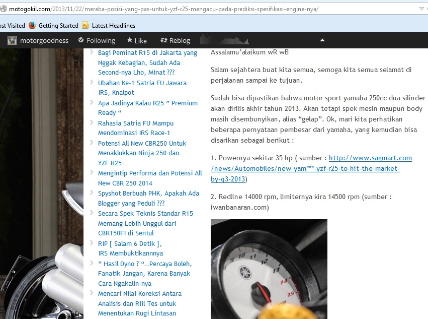 Ternyata sampai menjelang munculnya yzf r25, limiter speedometer r25 yang sampai 14000 rpm masih dibahas oleh para blogger, dan tetep masih enak dibaca. Dengan demikian kita sudah siap untuk mencantolkan jemuran kita di blog2 tersebut, jadi nggak ada ruginya, bahkan banyak untungnya bagi kita karena kasus ini dimunculkan kembali oleh blogger papan atas.