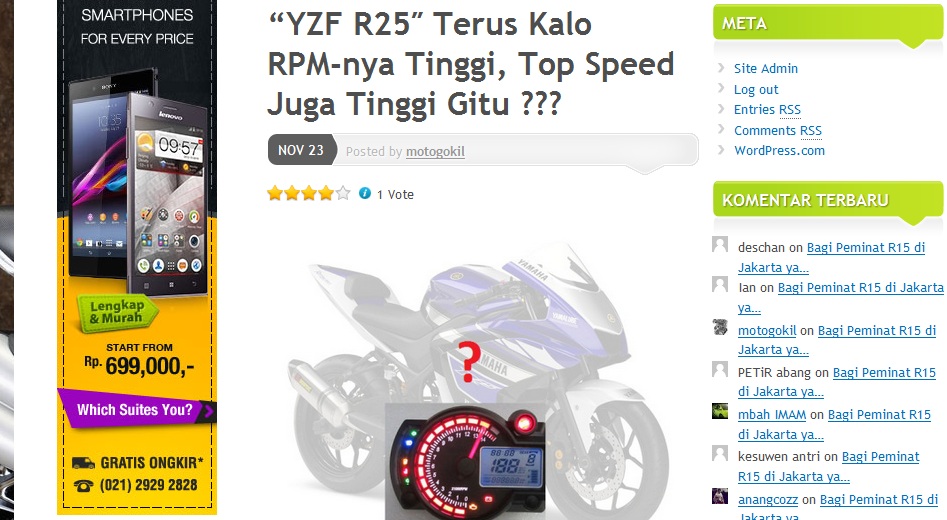 Ternyata sampai menjelang munculnya yzf r25, limiter speedometer r25 yang sampai 14000 rpm masih dibahas oleh para blogger, dan tetep masih enak dibaca. Dengan demikian kita sudah siap untuk mencantolkan jemuran kita di blog2 tersebut, jadi nggak ada ruginya, bahkan banyak untungnya bagi kita karena kasus ini dimunculkan kembali oleh blogger papan atas.