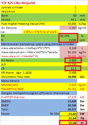 Ya, pastilah powernya akan turun setara dengan ninja250, perhatikan perubahan variabel yzf r25 beserta pengaruhnya terhadap besarnya power