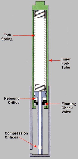 Jadi untuk meredam tendangan balik dari pegas oli sebagai damper keluar masuk melalui lubag suling (compression orifices).  Keluar masuknya oli sesuai dengan pergerakan sok. Ketika tabung sok mendem, oli dari bottom sok memasuki tabung, sedangkan ketika terjadi rebound oleh per, oli dari tabung memasuki bottom sok lewat lubang2 sulingan.