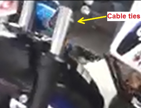 Dalam gambar di atas terdapat cable-tie warna putih. Biasanya cable-ties tersebut dipasang di pipa sok depan untuk mengukur pergerakan maksimum dari sok depan, dari hasil modifikasi yang telah dilakukan. Dan besarnya ayunan, kekerasan dan besarnya rebound sangat spesifik bagi tiap-tiap pembalap, tidak sama. Oleh karena itu ubahan setingan sok depan harus terukur (salah satunya dengan menggunakan cable-ties tersebut), untuk memudahkan evaluasi dan perbaikan yang kemudian akan dilakukan. Kira-kira apa sih yang diseting dalam sok depan ?…