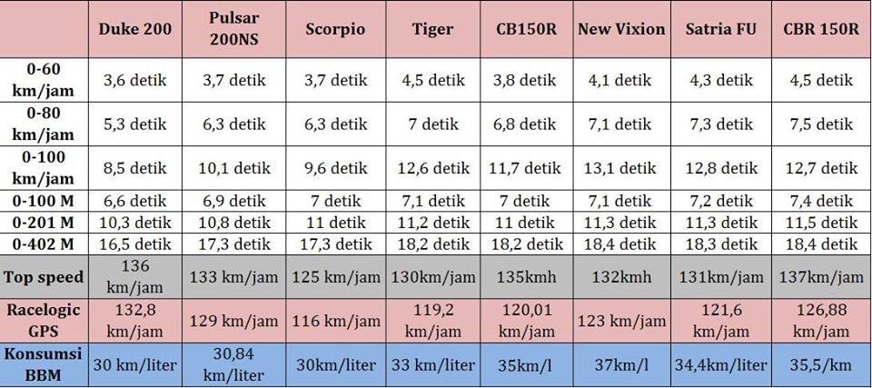 dan lagi sampai jarak 200 meter masih menang vixion tuh, lihat saja datanya