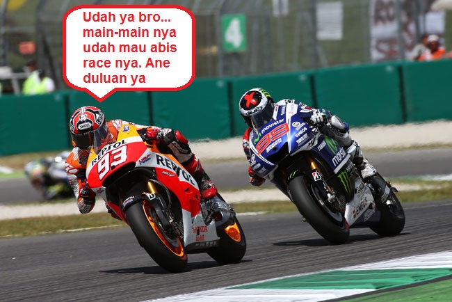 - Dan setelah nyalip JL di tikungan lap terakhir, keliatan MM nggak ngasih celah sedikitpun, kanapa nggak dari tadi aja.