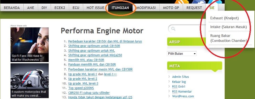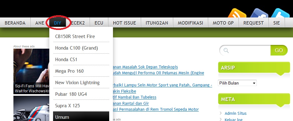 Kalau nge-klik DIY saja, maka ada beberapa meteri umum. Tapi jika di-klik pada motor tertentu maka, akan ditemukan beberapa artikel khusus mengenai praktek pada motor tersebut.