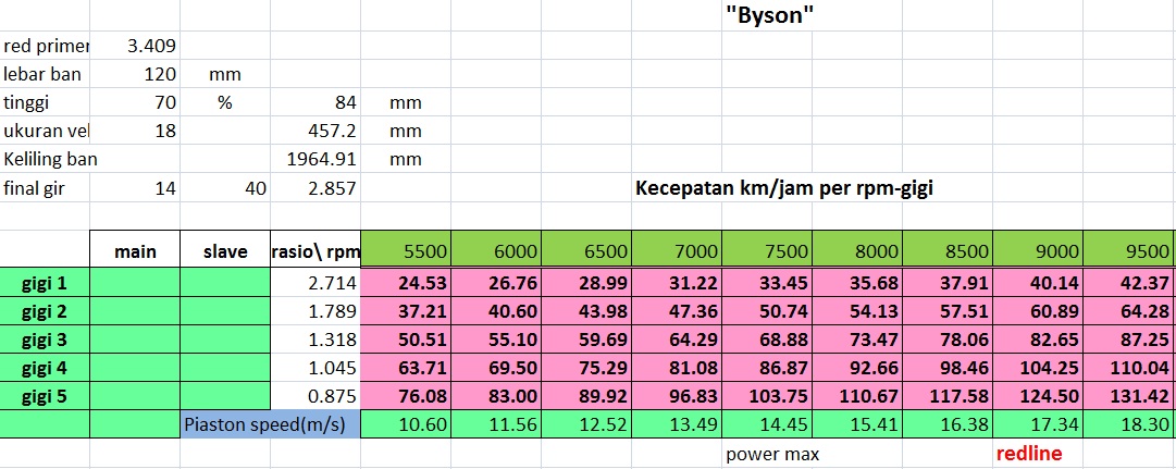 Jika dilihat variabel penentu performa engine scorpio, ternyata masih banyak yang bisa dioptimasi. Minimal ada 4 variabel yang masih bisa ditingkatkan, yaitu rpm, ve, afr dan cr. Jadi jika byson mengaplikasi engine scorpio, tentunya juga bisa dioptimasi, untuk mendapatkan power yang lebih tinggi lagi. Jika byson mengaplikasi silinder dan head scorpio, maka powernya cuma turun sedikit, karena perbedaan stroke byson dan scorpio cuma sedikit, stroke scorpio 58 mm sedangkan stroke byson 57.8 mm. Sehingga performanya pun mirip dengan scorpio