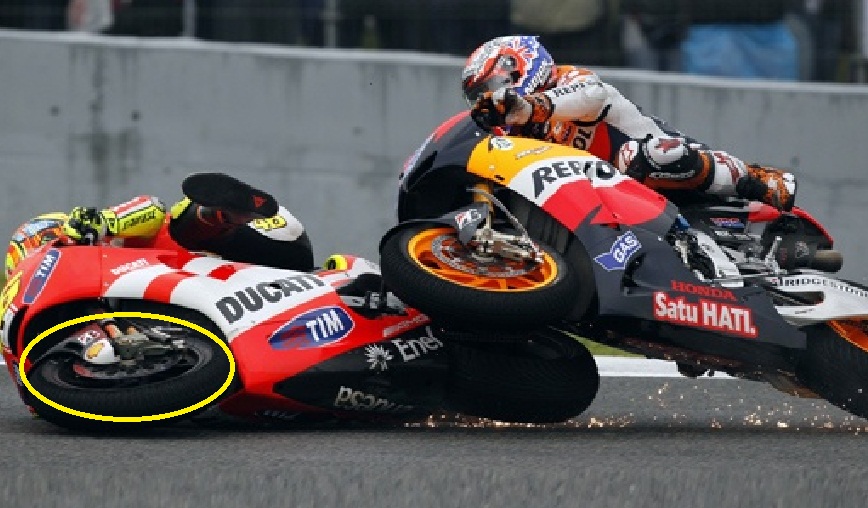 Atau ban sudah terlalu panas, grip tak mampu menahan gaya sentrifugal motor