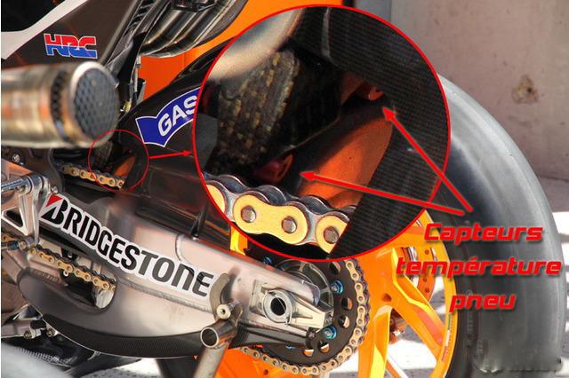 Setelah dilarang penggunaannya pada tahun 2010 dan 2011, sensor suhu kembali dilegalkan. Dengan bantuan sensor ini, suhu ban dapat diketahui pada saat berlangsungnya balapan, yang kemudian disimpan dan dikumpulkan dalam memeori yang terintegrasi dengan ECU. Data suhu ban selama penggunaannya dalam balapan sangat  penting, tidak hanya untuk produsen ban, akan tetapi juga untuk pengguna saat itu (rider motogp).