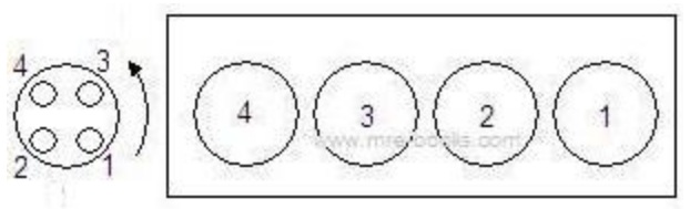 Dari tiga pertimbangan ini, maka firing order yang optimum adalah 1 – 3 – 4 – 2. Perhatikan posisi silinder dan terminal kabel busi di distributor