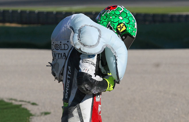 Kejadian crash/pembalap jatuh merupakan salah satu bagian hiburan pada balapan motogp. Kalau tidak ada yang jatuh rasanya kurang gurih. Penonton senang dengan adanya pembalap yang crash, tapi bagaimana dengan pembalapnya ? Bagaimana meningkatkan jaminan keselamatan pembalap ketika crash ? Tentunya dengan dipakainya pelindung tubuh, mulai dari helm, sepatu, sarung tangan dan baju balap (racing suit). Karena nilai pembalap motogp sangat mahal, maka untuk keselamatannya juga membutuhkan pelindung yang juga sangat mahal.
