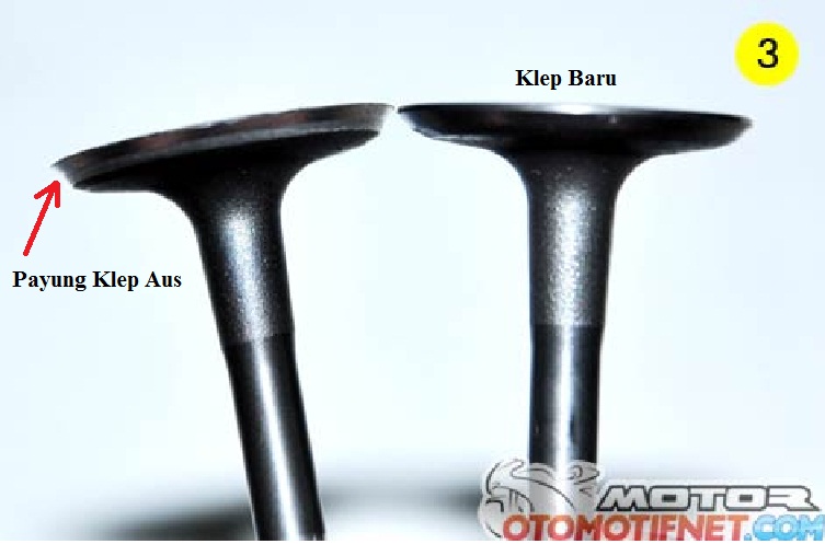 Sekarang perhatikan perbandingan klep baru dan klep yang aus
