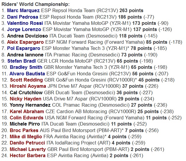 Motore mm troble senggolan ma ianone. Tetep honda 11 yamaha 0. Yah lumayan gak monoton. Daripada mm menang nti makin rendah rating dorna motogp. Kedepane makin bahaya klo problem motor mm udah terselesaikan. Malah mblape koyok wong edan senggol sana sini. Wkwkk. Tuh rossi kasih tau. Mar banmu ono opo kok peleg ke arep cepot. Bari senggolan karo ianone mau kuwi. Ojo2 banter2 ngko ndlosor loo.