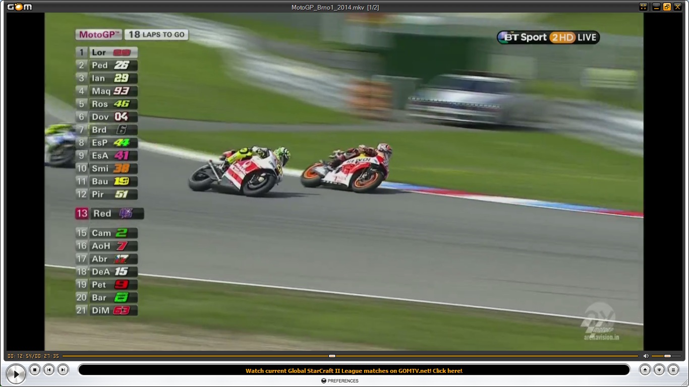 6. Akhirnya vr bisa meng-overtake mm, dan tak mampu dikejar lagi oleh mm. Berarti motor mm saat itu bener2 sedang memble. Meskipun demikian dengan mengandalkan skill-nya mm tetap bertahan pada posisi-4 untuk tetap cepat dan tidak jatuh. Pernyataan ini mengindikasikan bahwa motor + ban dalam kondisi kurang fit.