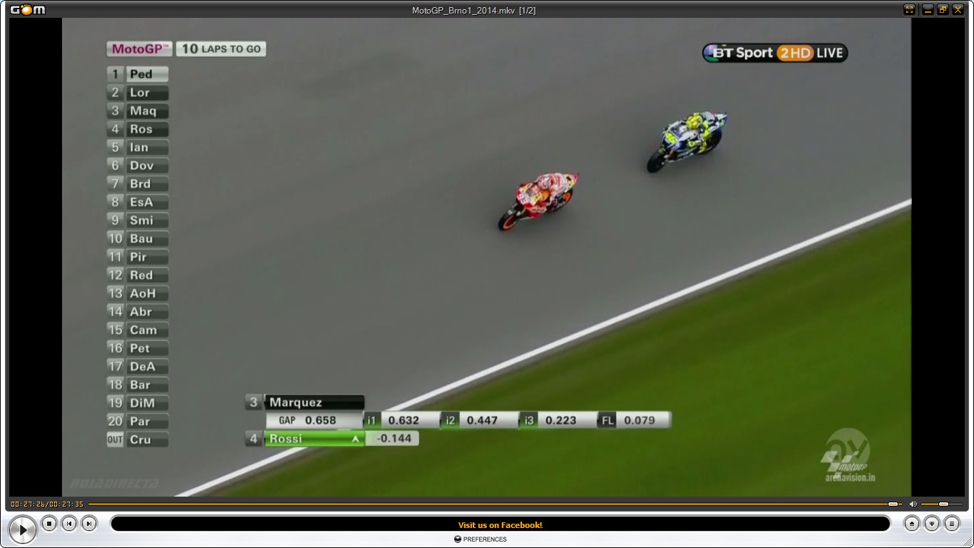 6. Akhirnya vr bisa meng-overtake mm, dan tak mampu dikejar lagi oleh mm. Berarti motor mm saat itu bener2 sedang memble. Meskipun demikian dengan mengandalkan skill-nya mm tetap bertahan pada posisi-4 untuk tetap cepat dan tidak jatuh. Pernyataan ini mengindikasikan bahwa motor + ban dalam kondisi kurang fit.