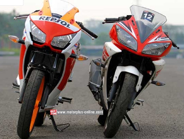Bagi orang awam, salah satu pertimbangan penting dalam memilih satu dari kedua motor ini, all new cbr150r dan yzf r15, adalah penampilannya. Nah kebetulan di motorplus online ada beberapa gambar yang bisa dijadikan referensi. Dari gambar judul terlihat jelas perbandingannya baik dari bentuk kepala, tangki dan buntut. Sama2 full fairing tapi dengan rasa yang sangat berbeda, sekarang mari kita bandingkan lebih detil lagi…