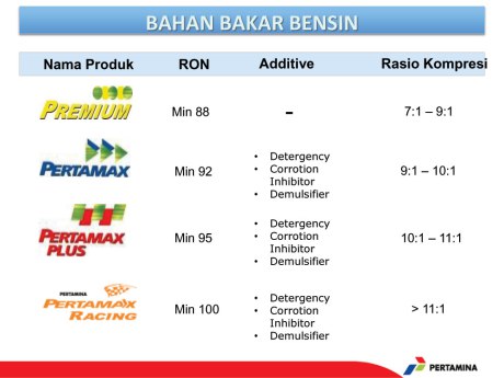 edukasi yang lebih baik justru pada “jangan menggunakan premium pada mesin berkompresi tinggi “, bukan sebaliknya