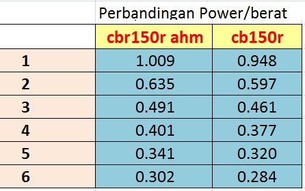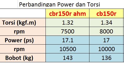 Akan tetapi diatas 8000 rpm, power cbr150r lokal mulai lebih unggul dari cb150r (PWR cbr150r > cb150r) , perhatikan tabel ini