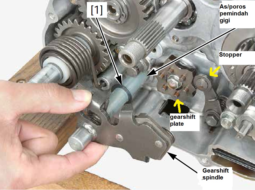 4. Karena bintang terhubung langsung dengan shift drum, maka shift drum juga ikut berputar.