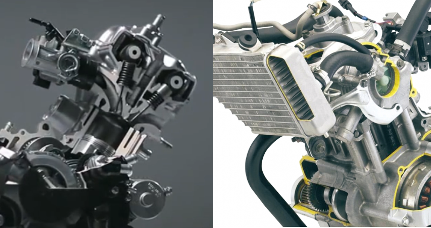 Untuk mesin dengan kompresi yang lebih tinggi lagi, maka air-fin dan oil cooler sudah tidak memadai untuk mendinginkan mesin. Sistem pendinginannya dilakukan oleh radiator (water/liquid cooler), seperti yang diaplikasikan pada mesin performa tinggi seperti vixion, cbr, r-series, ninja dan lain2.