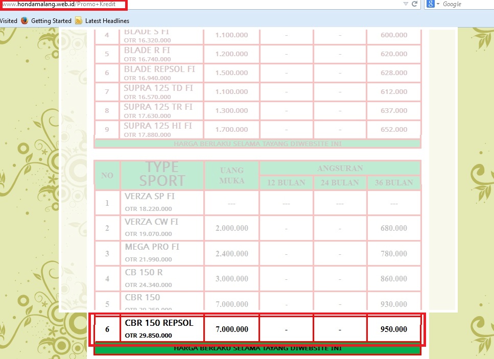 harga motor honda 01112014