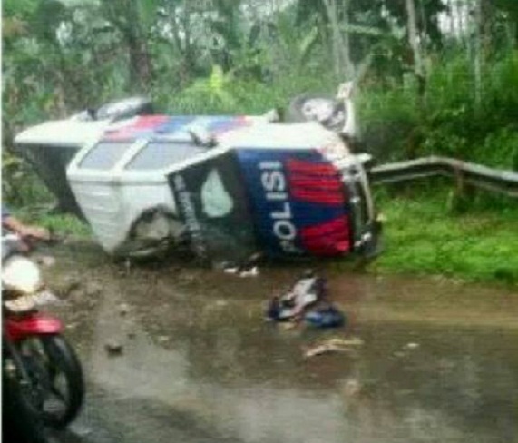 Beberapa hari yang lalu seorang polisi tewas dalam kecelakaan tunggal, ketika mengejar seorang rider yang seharusnya kena tilang dalam operasi zebra. Kalau kemarin polisi-nya naik motor yang memang sangat beresiko untuk jatuh, karena memang rodanya cuma 2. Kali ini malah lebih parah, karena kecelakaan tunggal melibat sebuah kendaraan roda empat. Roda-nya sudah empat buah, masih juga jungkir balik. Berikut penampakannya dari sisi lain.