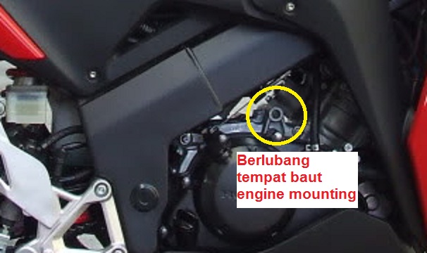 Mungkin jika CS1 reborn 150cc dohc, menggunakan basis engine cbr150 thailand, akan tinggal pasang (pnp). Yang diperlukan justru perubahan pada sasis CS1 (yang sekarang) untuk beradaptasi dengan engine CBR150 yang ber-head besar. Berikut penampakan engine mounting cbr150 thailand.