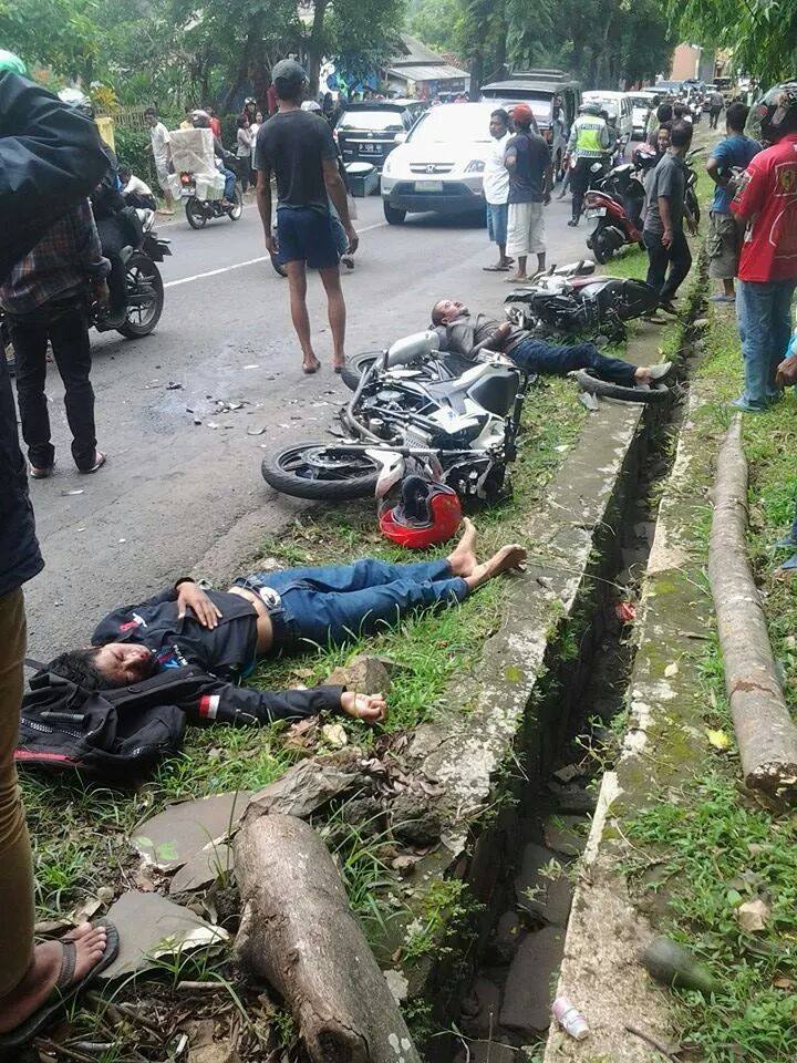 1. tadi siang jam 12 dikota sya juga terjadi kecelakaan. 2 motor senggolan, yg pake vixi nyungsep nabrak tumpukan bambu pinggir jalan, leher sobek,usus keluar,meninggal ditempat