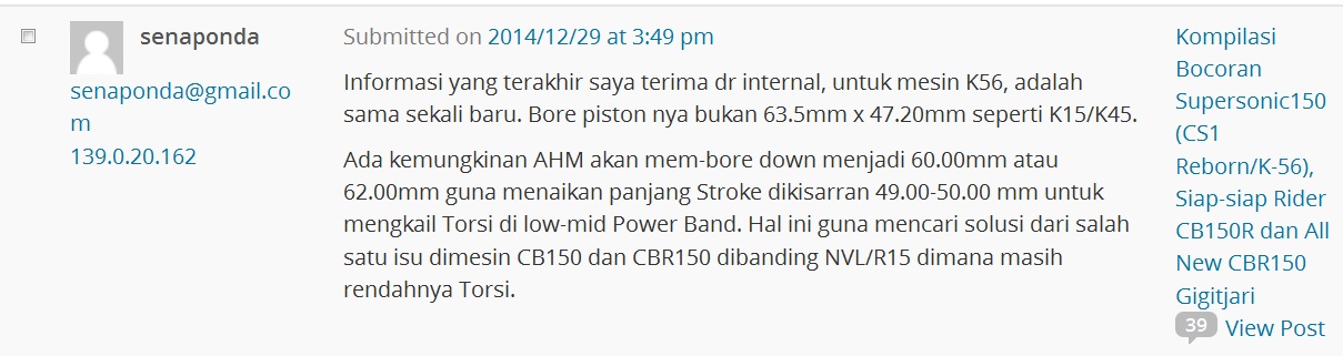 2. Loh jd yang bener stroke 48,8mm atau 53mm, kalo 48,8mm untuk 150cc masih kependekan, kalo stroke 53mm rasa2nya ngak Ahm bgt, biasanya kasta tertinggi dikluarinnya terakhir.
