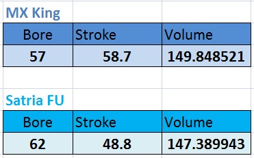 Jadi untuk membendung performa mx king sekaligus mengimbangi performa satri fu, maka supersonic akan memiliki stroke diantara satria fu 48.8 mm dan mx-king 58.7 mm. Berikut ini bocorannya …
