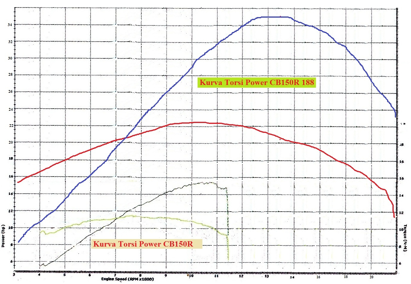 Ya bisa saja bro, karena yang dilawan oleh tenaga mesin kan cuma gaya gesek mekanik dan berat roller mesin dyno, ya jelas bisa sampai 20000 rpm. Dan menurut perkiraan ane dengan spek di atas, bentuk kurva torsi dan powernya seperti ini