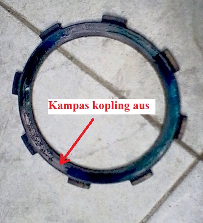 • Kampas kopling yang biasanya aus adalah kampas bagian tengah dengan kode 1PA, sedangkan 4 kampas kopling lainnya yang berkode 50C masih utuh [referensi 1, 2, 3]