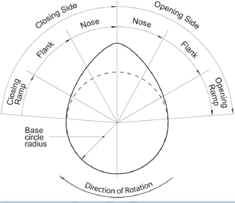 Kemudian jika profil camshaft bagian in dan ex digambarkan bersamaan, maka akan membentuk seperti ini