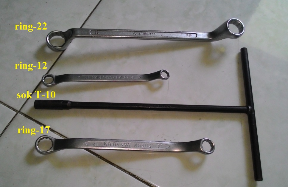 Segera siapkan beberapa alat-alat seperti standar paddock (khusus buat motor yang tidak punya jagrag tengah), kunci utama seperti ring 22, ring-12, sok-10 dan ring 17.