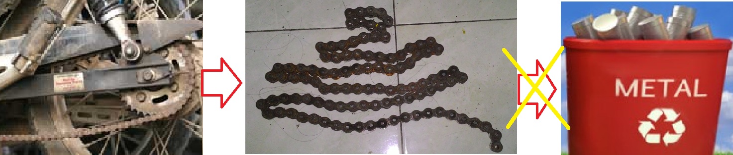Pada artikel yang lalu telah dijelaskan bagaiman rantai bekas sepeda motor bisa digunakan sebagai bagian dari meja lipat nempel tembok.