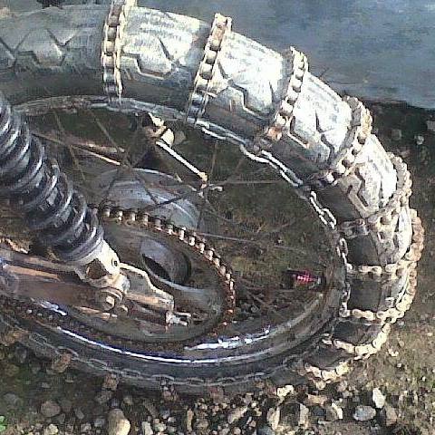 Maka ban pacul dengan memanfaatkan rantai motor bekas adalah seperti ini