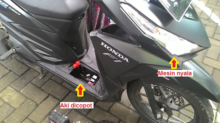 5. Kalau terpaksa pinjem aki vario saudara, tetangga atau kenalan terdekat (mungkin motor lain juga bisa, ane belum nyoba)